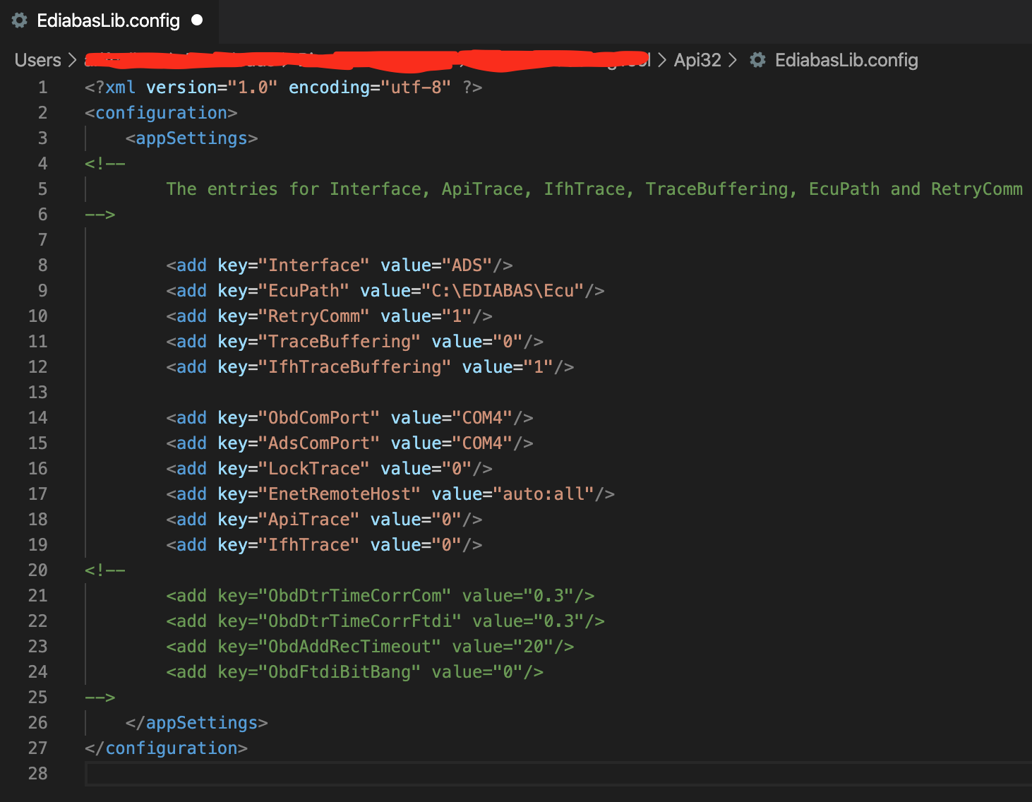 - Öffnen Sie die Datei EdiasbasLib.config in diesem Ordner mit einem Texteditor.